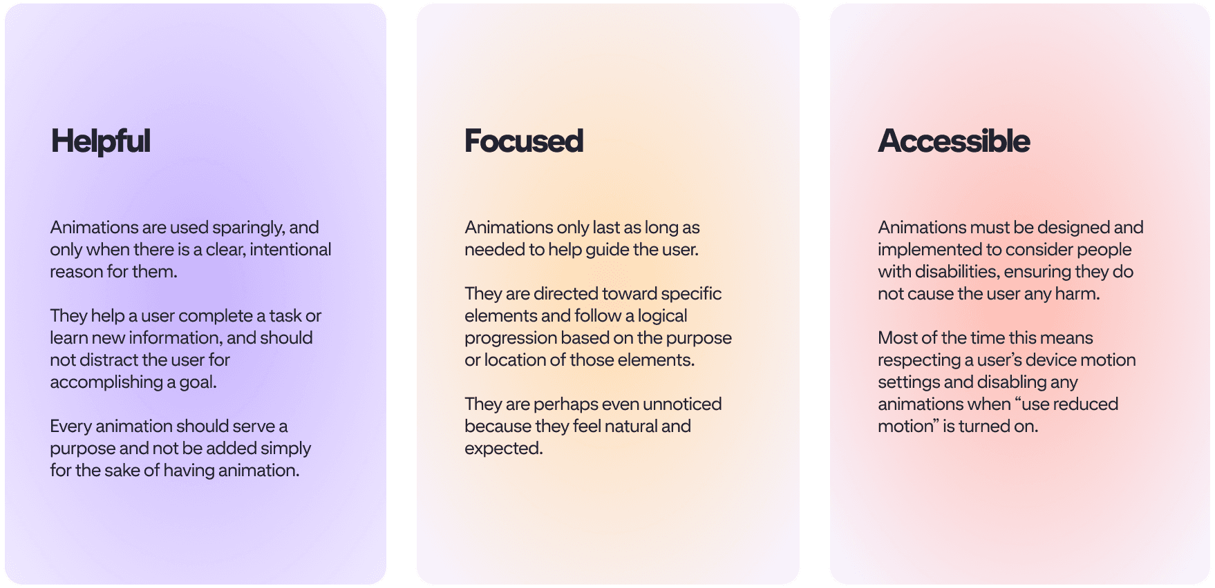To ensure a consistent and meaningful motion experience, 3 core principles were defined.