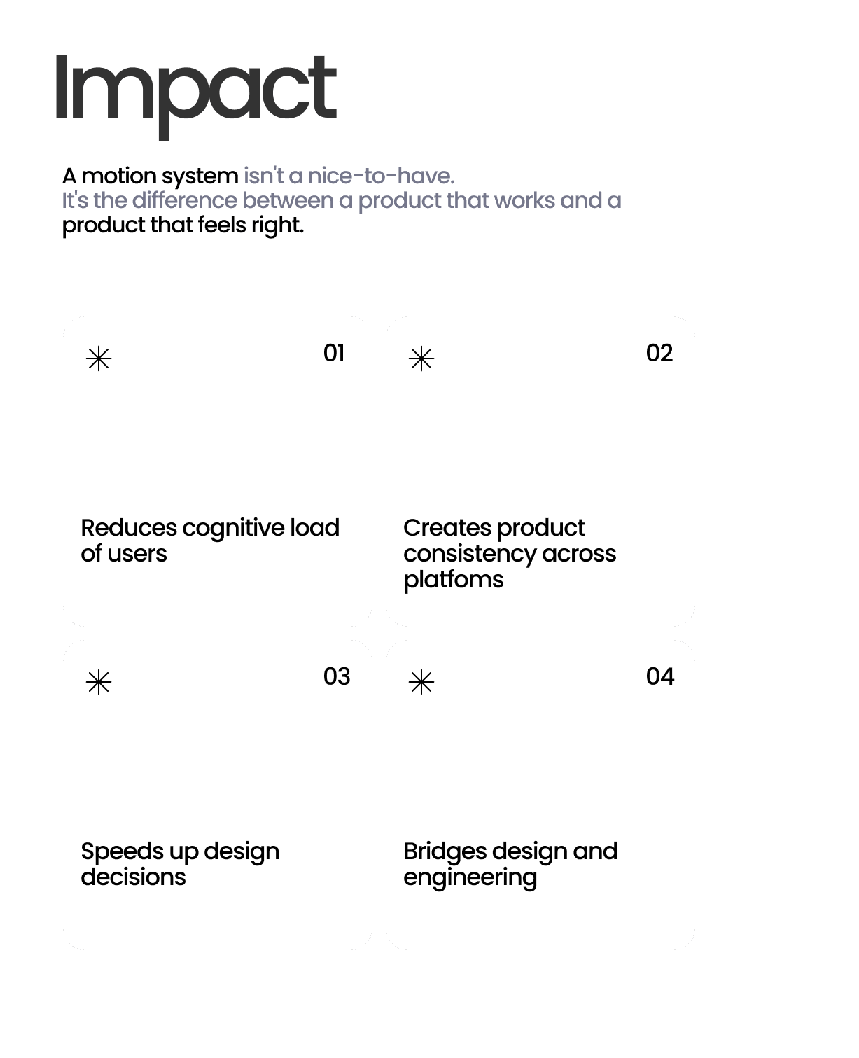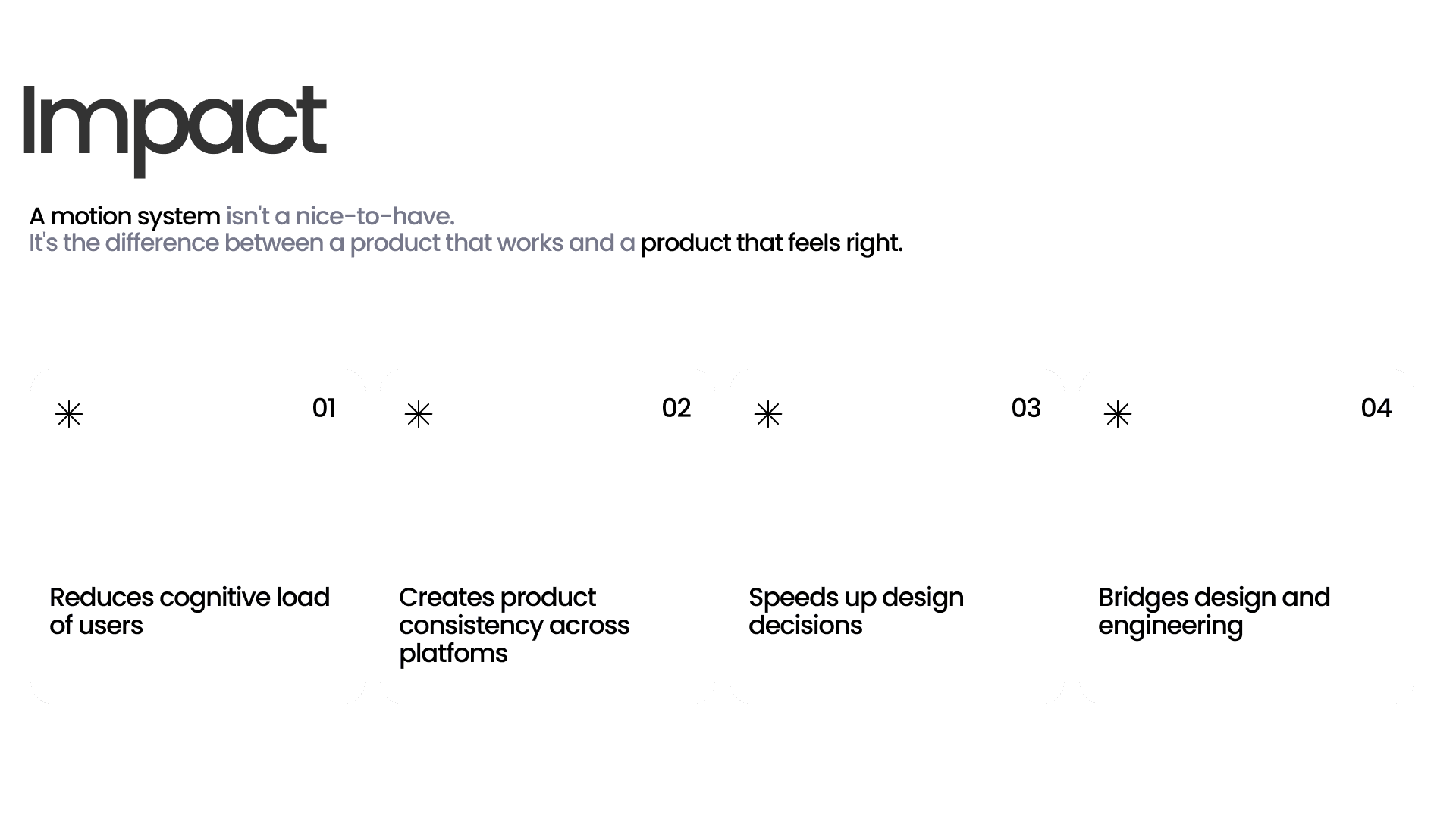 This project reinforced the importance of collaboration between product designers, motion designers, and developers to create a scalable and cohesive design system.