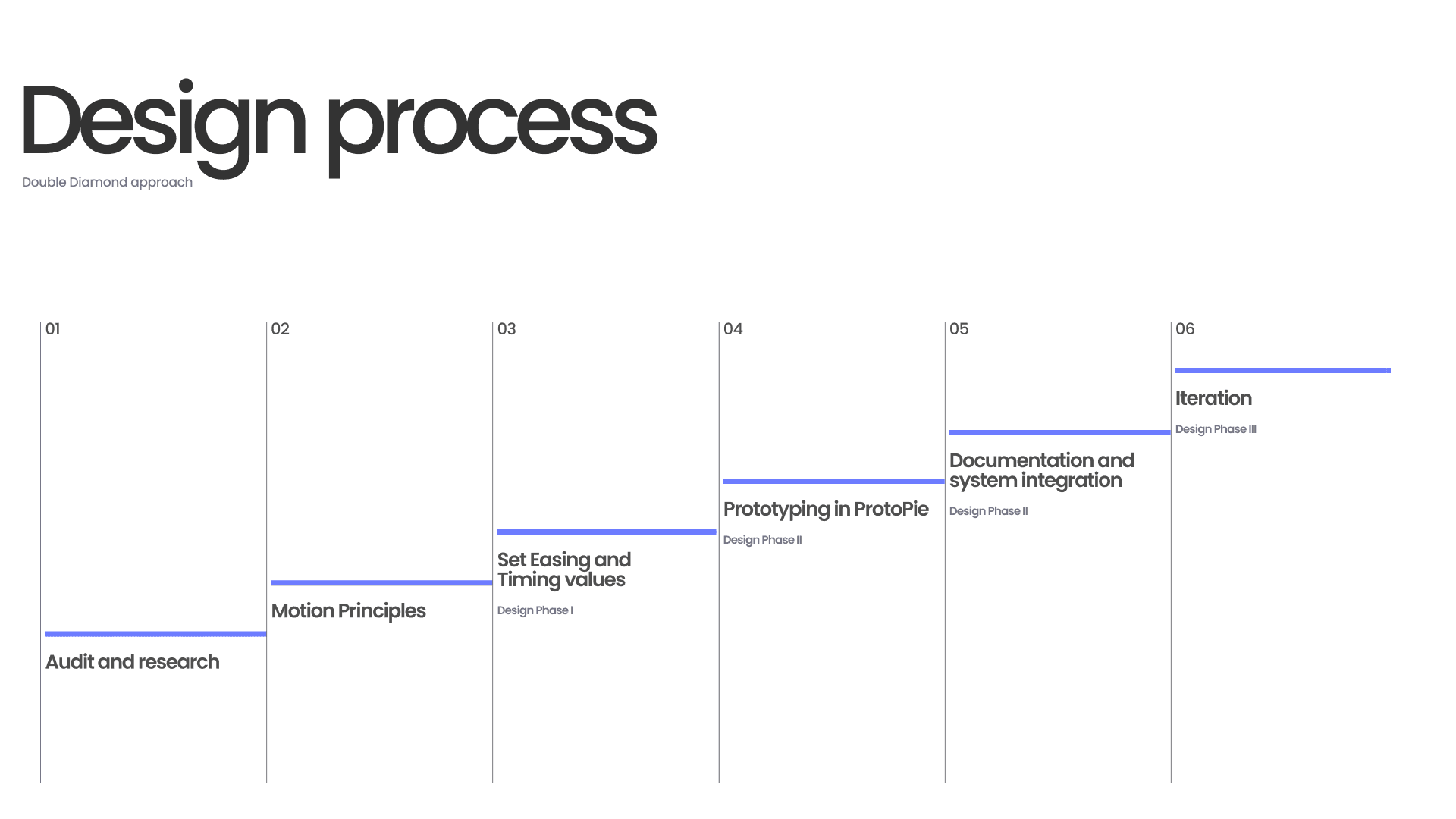 As part of this effort, motion tokens were implementing to standardise these values across the design system and introduced to bridge the gap between design and engineering..